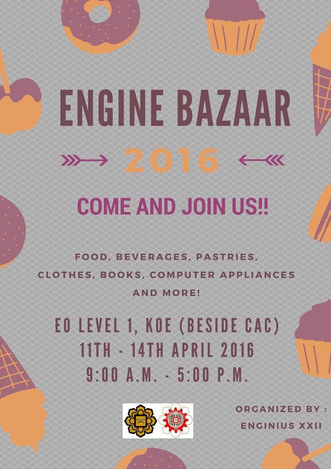 The bazaar held at E0, level 1, Kuliyyah of Engineering, IIUM Gombak from 11 to 14 April 2016 started from 9 a.m until 5 p.m. At the bazaar, there were 26 market vendors, most of them were by young IIUM entrepreneurs.