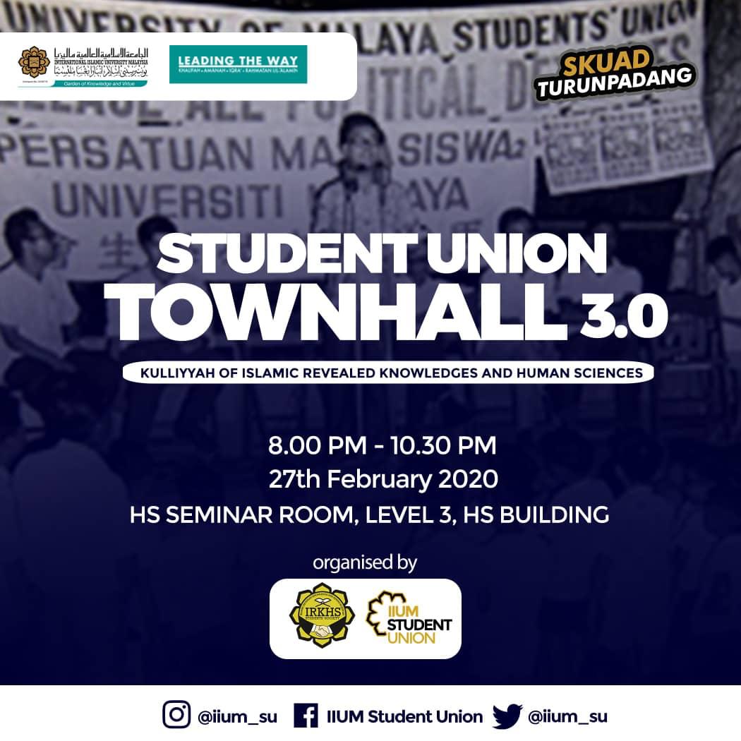 With that, the Student Union Townhall 3.0 was specially brought by Kulliyyah of Islamic Revealed Knowledge and Human Sciences (KIRKHS) in collaboration with the Student Union (IIUMSU) to give students a clear picture of the system as well as to introduce what the Student Union is and how it works for the benefit of the students.