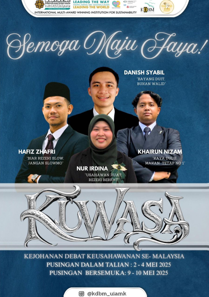 The first weekend of May marked an exciting chapter for IWON Pagoh debaters as three of our promising talents, Muhammad Hafiz Zhafri Bin Abd Kamal, Nur Irdina Binti Hamka and Muhammad Khairun Nizam Bin Azhar, embarked on a challenging journey under the collaborative flag of Kelab Debat Bahasa Melayu UIAM Kuantan at the prestigious Pertandingan Debat Keusahawanan UMK 2025 organized by Universiti Malaysia Kelantan, Dewan Bahasa dan Pustaka, Jabatan Pendidikan Negeri Kelantan Kementerian Pendidikan collaborated with Majlis Debat Universiti Malaysia (MADUM) and two more collaborators.