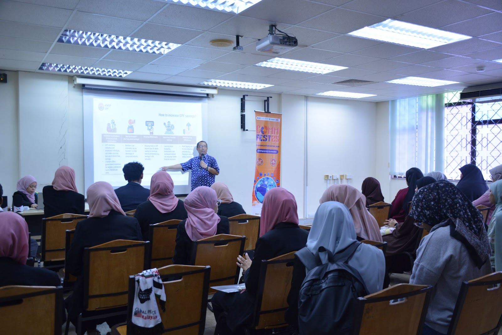 GOMBAK, 28 May 2025: A sharing session prepared fresh graduates for work and retirement. It was conducted by Nor Iskandar Md. Nor, a representative of the Employee Provident Fund (EPF), at the International Islamic University of Malaysia, in conjunction with the Communication Festival 2025, today.