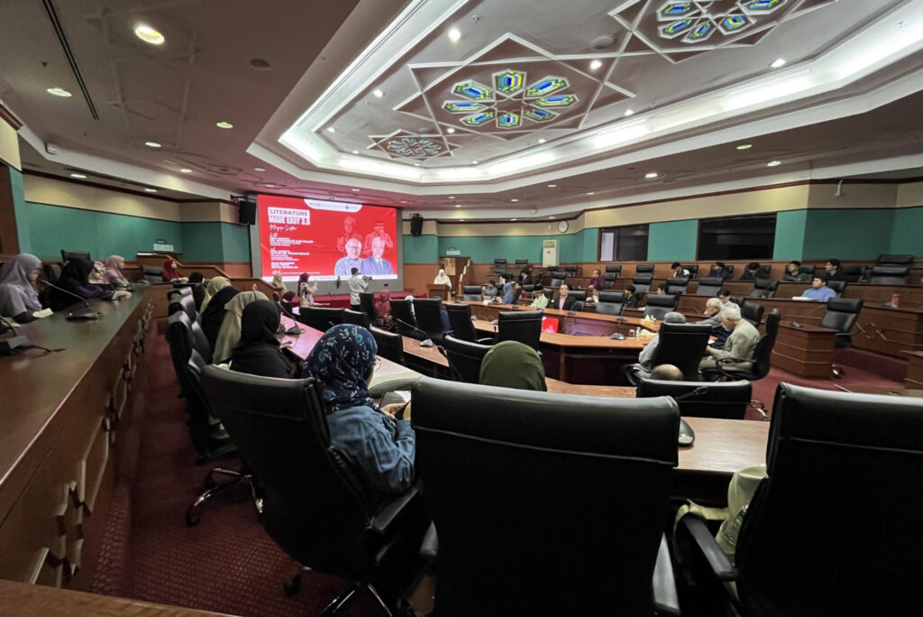 Literature Made Easy 3.0: “Mengapa Sastera” has engaged the participation of more than 100 students, staff and lecturers from various Kulliyyah of IIUM. In addition to that, this event had also, among others, attracted representatives from the University of Malaya (UM) and Universiti Tun Abdul Razak (UNIRAZAK) into its nearly three hours session. Also present was Professor Dr. Shukran Abd. Rahman, the Dean of AbdulHamid AbuSulayman Kulliyyah of Islamic Revealed Knowledge & Human Sciences (AHAS KIRKHS); Professor Dr. Rahmah Ahmad H. Osman, the Head of the Scholastic Corpus for Literature and Humanities andDirector of The Omani Research and Studies Centre; Dr. Tanja Jonid, the Head of Department of English Language and Literature (DELL); Assoc. Professor Dr. Ainul Azmin Binti Md. Zamin, the Head of Responsible Research & Innovation; and numerous other respected lecturers from a diverse range of Kulliyat.