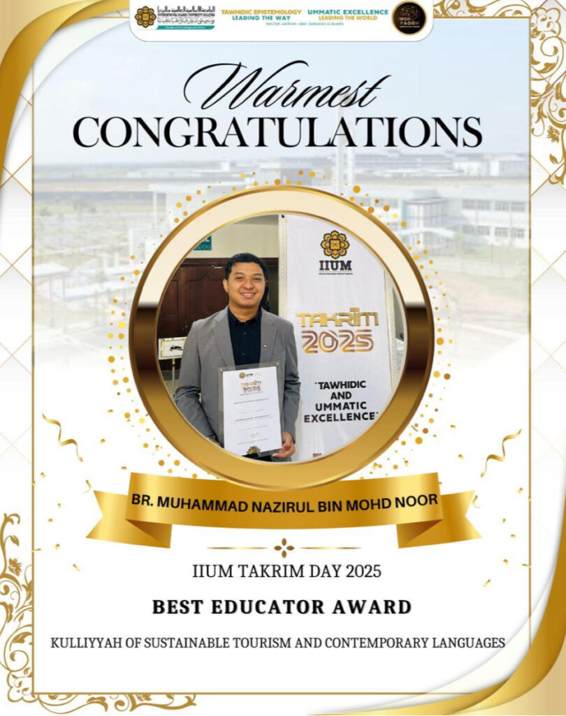 The highlight of the ceremony was the honouring of Br. Muhammad Nazirul bin Mohd Noor, who was awarded the Best Educator Award. This award is a recognition of his unwavering dedication, inspiring leadership, and passion for nurturing both knowledge and values in his students. For years, Br. Nazirul has been a guiding force, known not only for his academic commitment but also for his mentorship and ability to instill confidence in his students. His impact extends beyond the classroom into the lives of his colleagues and the wider IIUM community. Receiving this prestigious award at Takrim Day 2025 is a testament to his devotion to IIUM’s mission of producing balanced graduates who embody both intellectual and spiritual excellence. His recognition is also a proud moment for IIUM Pagoh, affirming that the campus is home to educators of the highest calibre. He is one of the best educators who are shaping the “generation of thinkers” among all Pagoh debaters as he is the one and only coordinator of IWON Pagoh.