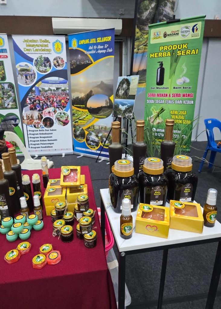 The Ukay Indah Apartment Community Garden has also benefited from IIUM’s involvement, having attended stingless beekeeping training sessions at the AU2 community garden. The group has since begun producing its own madu kelulut, displayed alongside its signature smoked catfish (keli salai). Meanwhile, the Visi Nadi Selangor Community Garden showcased lemongrass-based wellness products, such as shower gel and balm, reflecting the creativity and diversity of community-led enterprises under MPAJ’s guidance.