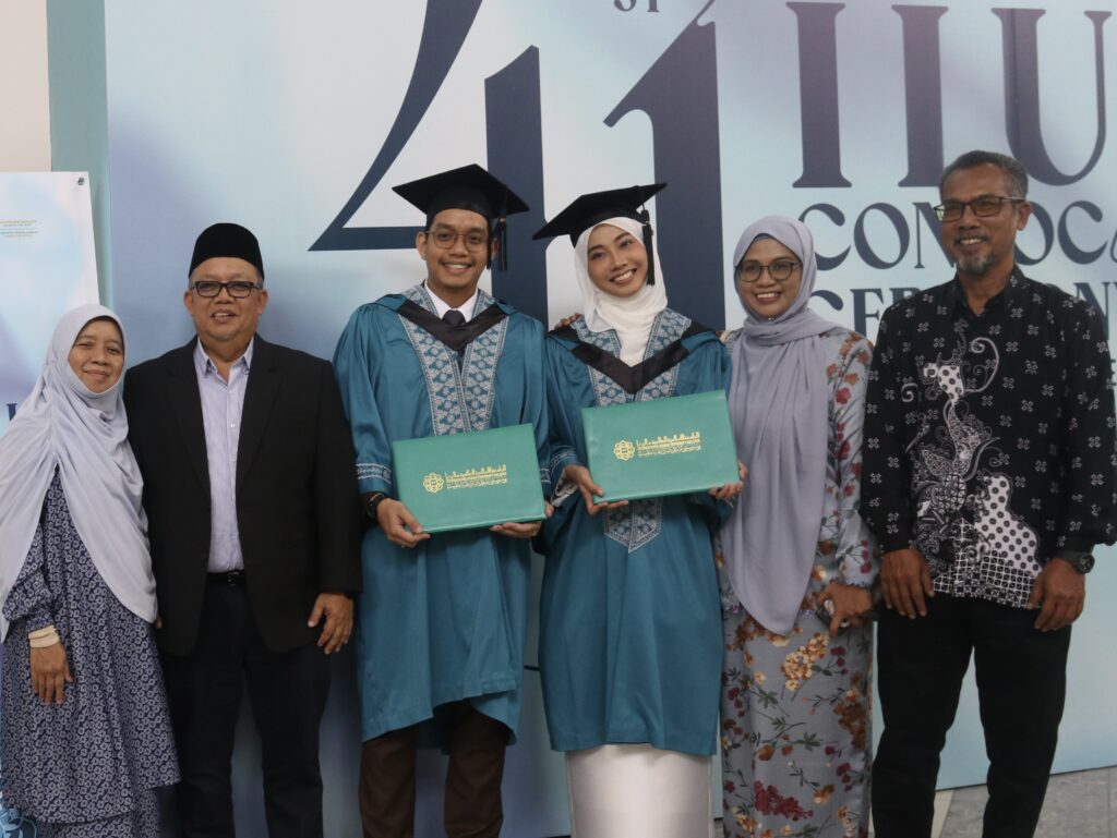 GOMBAK, 8 December 2025 : A simple group assignment in their third year turned into a life-changing moment for two Ahmad Ibrahim Kulliyyah of Laws (AIKOL) students, as married couple Farah Athirah Binti Rosli and Ayatur Rahman Bin Muzammil celebrated their graduation side-by-side in the fourth session of the 41st IIUM Convocation Ceremony at the Main Hall of IIUM Cultural Centre (ICC), IIUM Gombak campus.