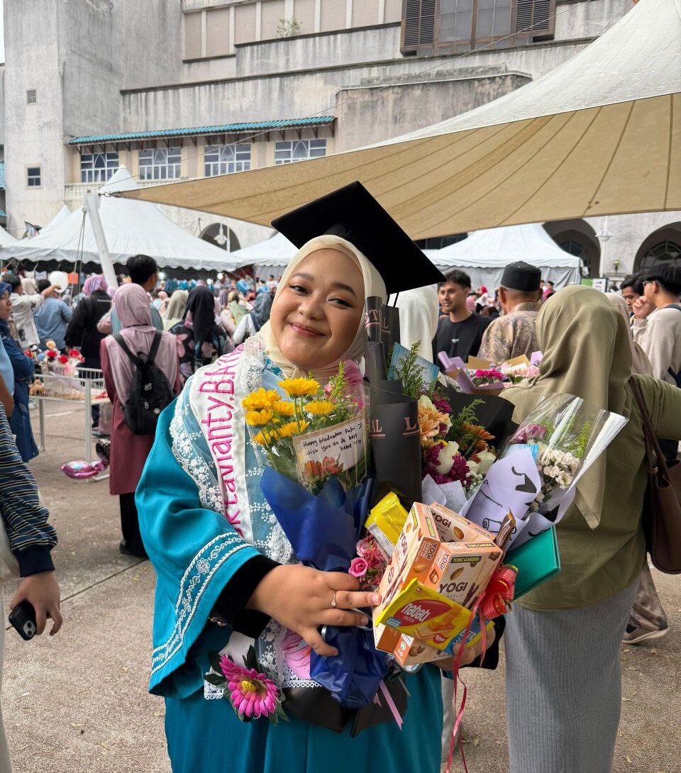 GOMBAK, 10 December 2025: An Indonesian graduate from Kulliyyah of Sustainable Tourism and Contemporary Languages (KSTCL), Putri Oktavianty recounted her journey studying in IIUM after she was conferred her degree in Bachelor of Arts in Arabic for International Communication (Honours) during the ninth session of the 41st IIUM Convocation Ceremony at the Main Hall of IIUM Cultural Centre (ICC).